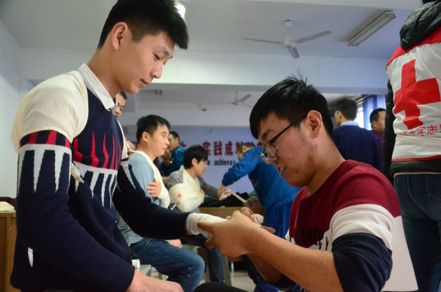 參加培訓(xùn)的安全員通過認(rèn)真學(xué)習(xí)和按照要求進(jìn)行實(shí)際操作演練,在學(xué)習(xí)心肺復(fù)蘇的操作以及AED的使用,創(chuàng)傷救護(hù)止血、包扎、固定、搬運(yùn)等四大技術(shù)的理論與實(shí)際操作基礎(chǔ)上,還認(rèn)真聆聽了中國紅十字會的發(fā)展歷程以及“三救三獻(xiàn)”的工作職責(zé)。