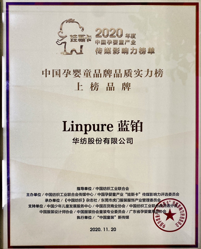 導(dǎo)讀:日前,公司Linpure藍(lán)鉑品牌既獲“娃斯卡”2019年度中國孕嬰童品牌暖心實(shí)力榜后,再獲中國孕嬰童產(chǎn)業(yè)“娃斯卡”傳媒影響力評(píng)選委員會(huì)頒發(fā)的2020年度中國孕嬰童品牌品質(zhì)實(shí)力大獎(jiǎng)。