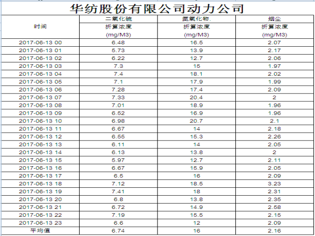 煙氣排放數據信息公開2017.6.13數據