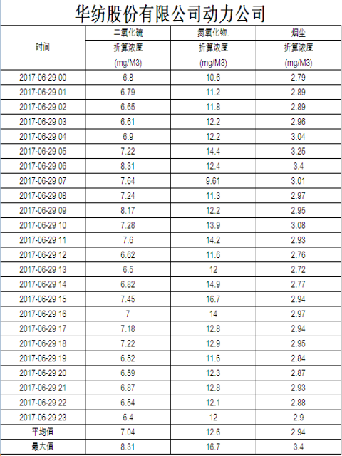 煙氣排放數據信息公開2017.6.29數據