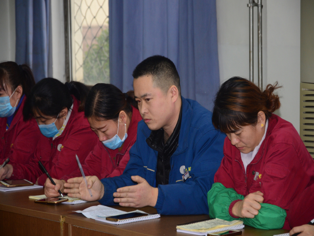 “有時候一句暖心的話就能激發(fā)出員工的積極性”……這是公司車間輪班長討論開展班前會心得時的情形。