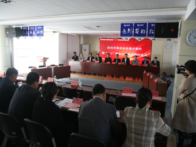 公司是全國紡織行業(yè)的優(yōu)勢骨干企業(yè),多年來規(guī)范協(xié)商、認(rèn)真履行《集體合同》,在員工權(quán)益、安全生產(chǎn)及女職工保護(hù)等方面取得了良好成效,集體協(xié)商制度也為員工隊(duì)伍穩(wěn)定、企業(yè)整體發(fā)展提供了有力保障。京博集團(tuán)、渤海活塞等濱州市不同行業(yè)的優(yōu)勢骨干企業(yè),一同參加了當(dāng)天的集中簽約儀式。圖為當(dāng)天集中簽約儀式現(xiàn)場情形。